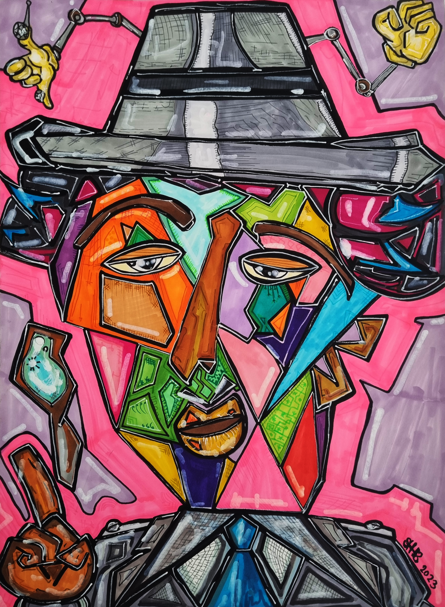 Abstract figurative artwork.