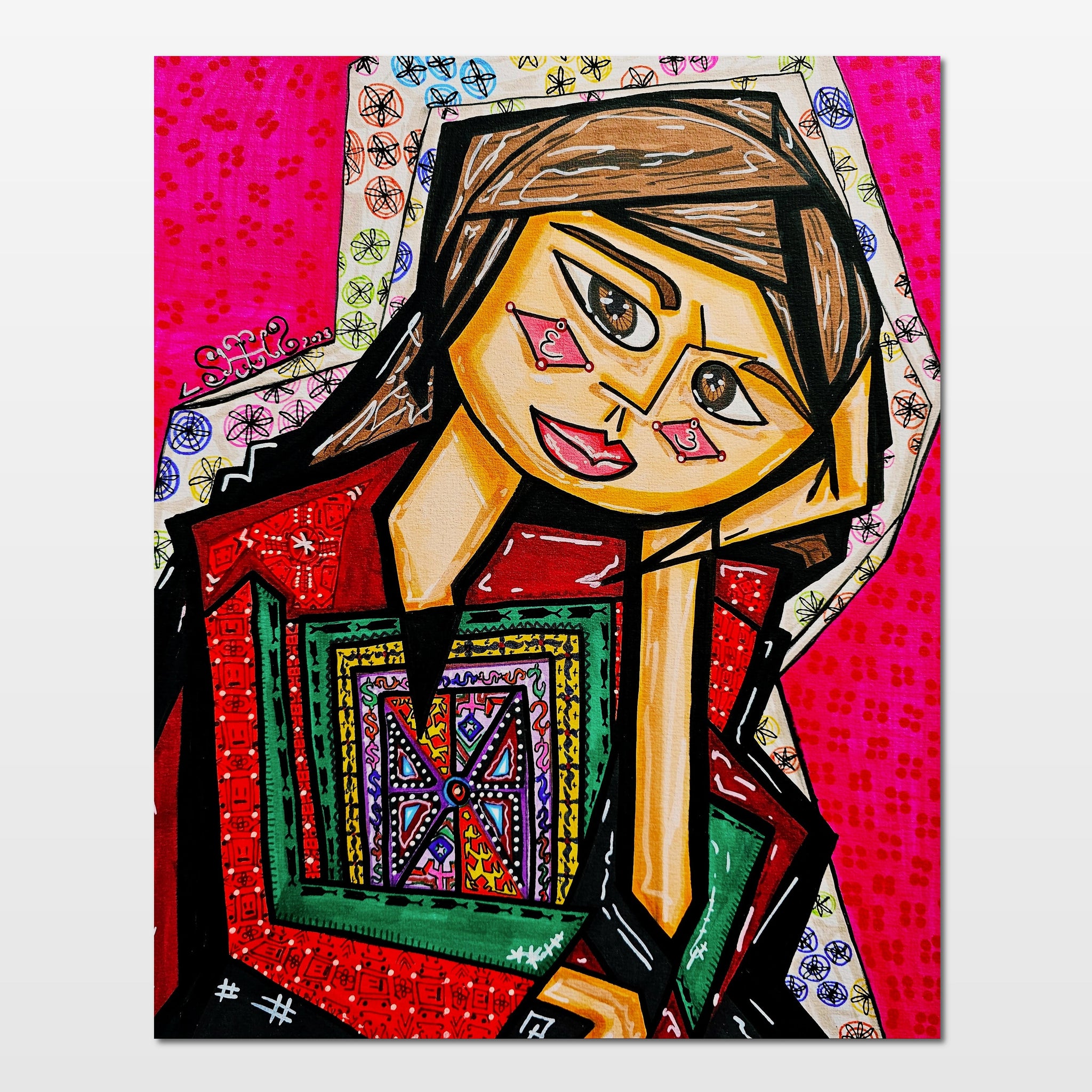 This art piece captures the captivating blend of a young girl called Gaza, and her radiance against the backdrop of a vibrant seaside.