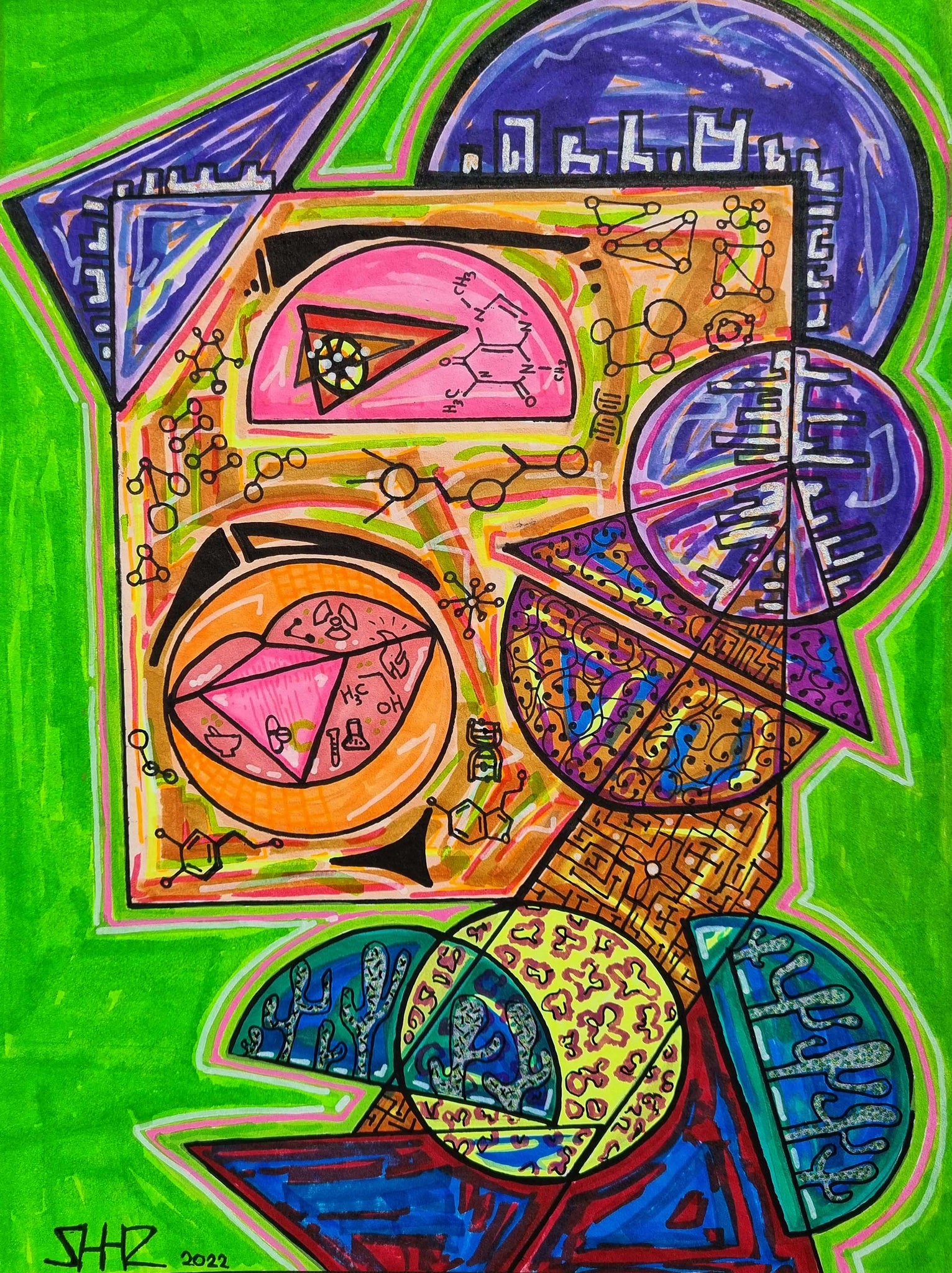 Abstract figurative artwork.